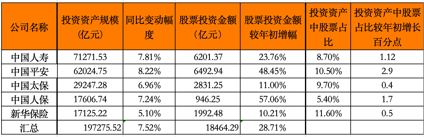 注:2025年上半年五大上市险企的投资资产规模及股票投资金额等数据对比分析;数据来源险企2025年半年报。