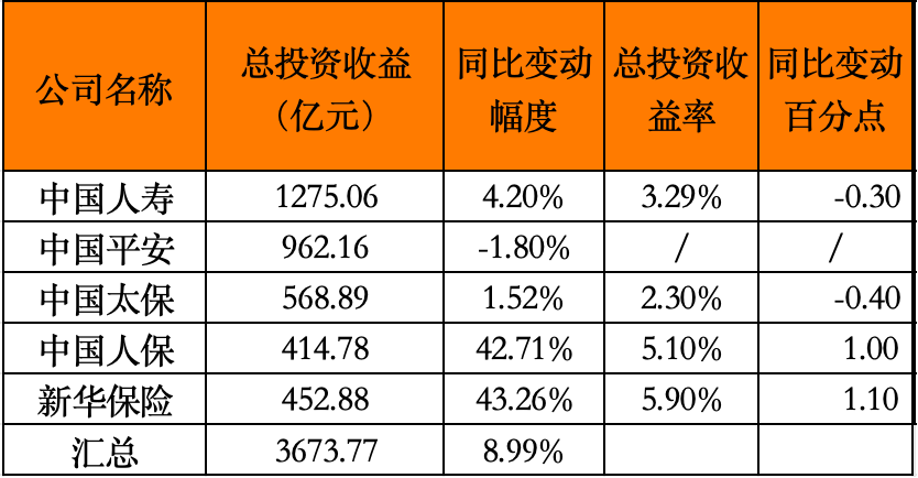 五家上市险企总投资收益增9%达3673亿,新华保险增速领跑